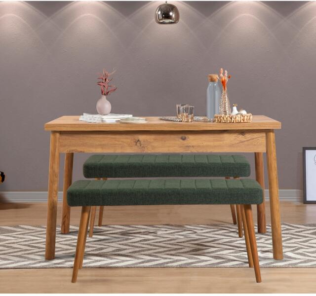 Átalakítsd étkezési területét hangulatos és meghívó helyré a lenyűgöző étkezőasztalunkkal és padokkal. A 100% -os melaminnal bevont részecskemezből készült, ez a készlet nemcsak tartós, hanem egy modern és stílusos varázst is kimutat, amely növeli az otthoni dekorációját. Elegáns tervezés a modern otthonokhoz Az étkezőasztal és az atlanti fenyőben és a zöld színekben lévő padok karcsú kialakítása kifinomultan hozzáadja az étkezőjét. A tiszta vonalak és a minimalista esztétika tökéletessé teszi ezt a készletet a kortárs otthonok számára, akik elegáns frissítést keresnek. Hozzon létre emlékezetes pillanatokat szeretteivel Gyűjtse össze családját és barátait ennek a gyönyörű étkezési szettnek körül, és készítsen felejthetetlen emlékeket az ízletes ételekről. A tágas asztal és a kényelmes padok bőséges ülőhelyeket biztosítanak mindenki számára, hogy élvezhessék egymás társaságát. Minőségi kézművesség tartós felhasználáshoz A 18 mm vastag részecskékkel készített étkezési készletet az elkövetkező években építették. A melamin bevonat védelmet nyújt a karcolások, a foltok és a napi kopás ellen, biztosítva, hogy a bútorok hosszú ideig ugyanolyan jónak tűnjenek. Műszaki részletek: Anyag: 100% melamin bevonatú részecskeszár vastagság: 18 mm Étkezőasztal mérete: Szélesség: 120 cm, magasság: 75 cm, mélység: 75 cm (1 darab) Bench Méret: Szélesség: 100 cm, magasság: 48 cm, mélység: 39 cm (2 darab) Szín: Atlanti -óceán fenyő és zöld
