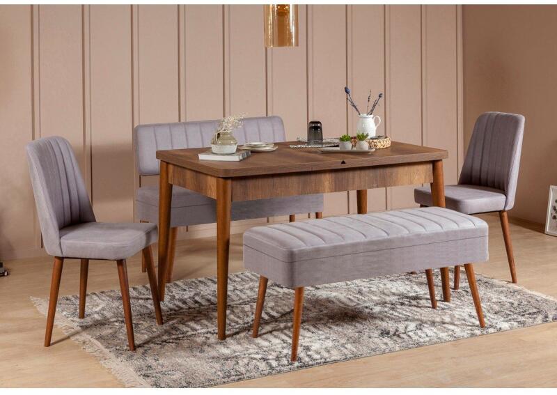 AG Étkezőgarnitúra Kihúzható Asztal, Szék 5 db Vina 0701 - 4 - Dió, Szürke