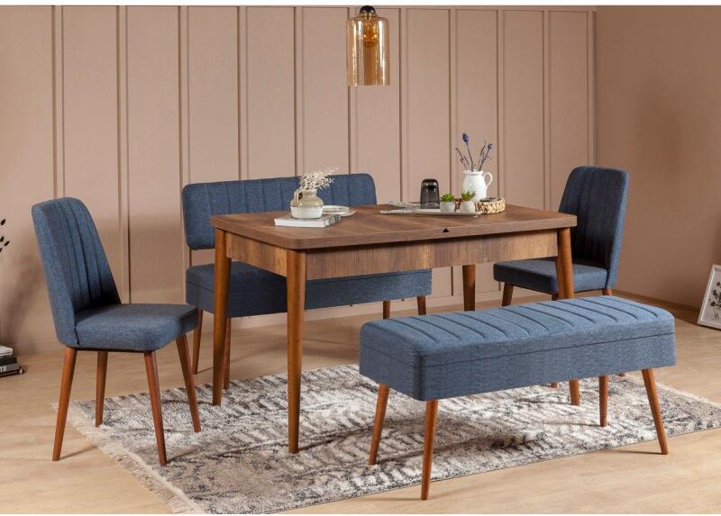 AG Étkezőgarnitúra Kihúzható Asztal, Szék 5 db Vina 1048 - 4 - Dió, Sötétkék