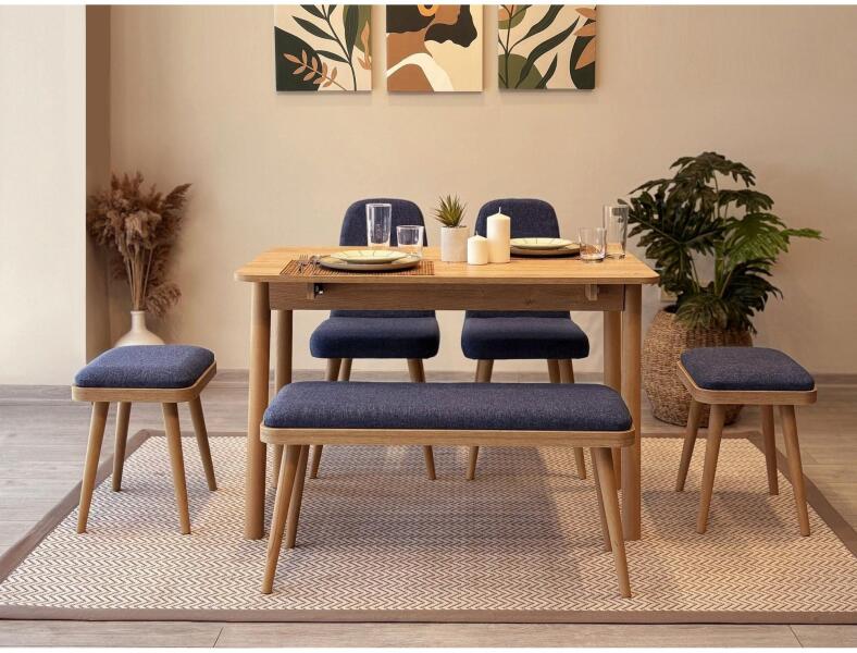 AG Étkezőgarnitúra Kihúzható Asztal, Szék 6 db Vina Mini 03 1048 - Tölgy, Sötétkék