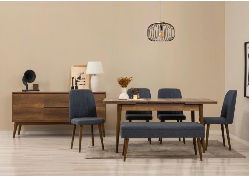 AG Étkezőgarnitúra Kihúzható Asztal, Szék, Konzol Asztal 7 db Vina 03 1048 - Dió, Sötétkék