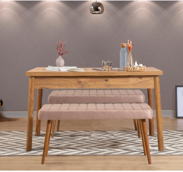 Átalakítja étkezési területét hangulatos és meghívó helyré ezzel a lenyűgöző 3 darabos étkezőasztal és padkészlettel. A 100% -os melaminnal bevont részecskemezből készült, ez a készlet nemcsak tartós, hanem hihetetlenül stílusos is. Az Atlanti -óceán fenyője és a kőszínek minden helyiséghez hozzáadnak egy kis kifinomultságot, így ez tökéletes kiegészítés az otthona számára. Elegáns formatervezés a modern élethez Az étkezőasztal és a padok karcsú kialakítása megemeli az étkező megjelenését, meleg és barátságos légkört teremtve a család és a barátok összegyűjtésére. A tiszta vonalak és a minimalista stílus miatt ez a készlet sokoldalú választást kínál minden dekorációhoz. Kényelmes és funkcionális Az étkezőasztal elég tágas ahhoz, hogy négy ember kényelmesen elférjen, míg a padok további ülőhelyeket biztosítanak anélkül, hogy túl sok helyet foglalnának el. Akár alkalmi étkezést élvez, akár vacsorát rendez, ez a készlet tökéletes minden alkalomra. Kiváló minőségű anyagok tartós felhasználáshoz A 18 mm vastag melaminnal bevont részecskemezből épített étkezőkészlet tartósan épül. Az erős felépítés biztosítja a stabilitást és a tartósságot, így az elkövetkező években élvezheti ezt a készletet. Műszaki részletek: Anyag: 100% melamin bevonatú részecskeszár vastagság: 18 mm Étkezőasztal mérete: Szélesség: 120 cm, magasság: 75 cm, mélység: 75 cm (1 darab) Bench Méret: Szélesség: 100 cm, magasság: 48 cm, mélység: 39 cm (2 darab) Szín: Atlanti -óceán fenyője és kő