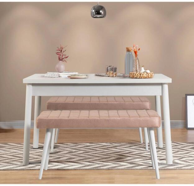 Átalakítsd étkezőjét stílusos és meghívó helyré a 3 darabos étkezőasztalunkkal és padokkal. A 100% -os melaminnal bevont részecskemezből készült, ez a készlet nemcsak tartós, hanem egy modern varázst is kimutat, amely növeli az otthoni dekorációját. Elegáns tervezés a modern otthonokhoz Az étkezőasztal és a padok karcsú kialakítása minden helyiséghez hozzáadott kifinomultságot. A fehér és a kő szín kombinációja kortárs megjelenést hoz létre, amely lenyűgözi a vendégeket, és az étkezést luxus élményré teszi. Kényelmes és funkcionális Az étkezőasztal elég tágas ahhoz, hogy kényelmesen befogadja a családját és a barátait, míg a padok további ülőhelyeket biztosítanak anélkül, hogy túl sok helyet foglalnának el. Akár alkalmi étkezést élvez, akár vacsorát rendez, ez a készlet tökéletes minden alkalomra. Kiváló minőségű anyagok tartós felhasználáshoz 18 mm vastag melaminnal bevont részecskeszkával készítve ezt a készletet az elkövetkező években építették. A szilárd felépítés biztosítja a stabilitást és a tartósságot, és ez gyakorlati beruházássá válik otthonának. Frissítse étkezőjét a 3 darabos étkezőasztalunkkal és padkészlettel, és hozzon létre egy barátságos légkört, amelybe szeretni fog. Műszaki részletek: