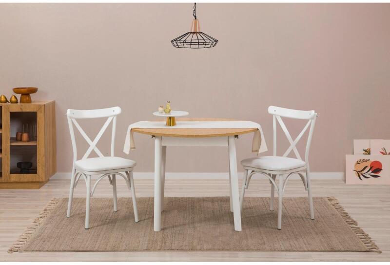 ASIR GROUP Étkezőgarnitúra Kihúzható Asztal, Szék 3 db Oliver - Fehér, Tölgy