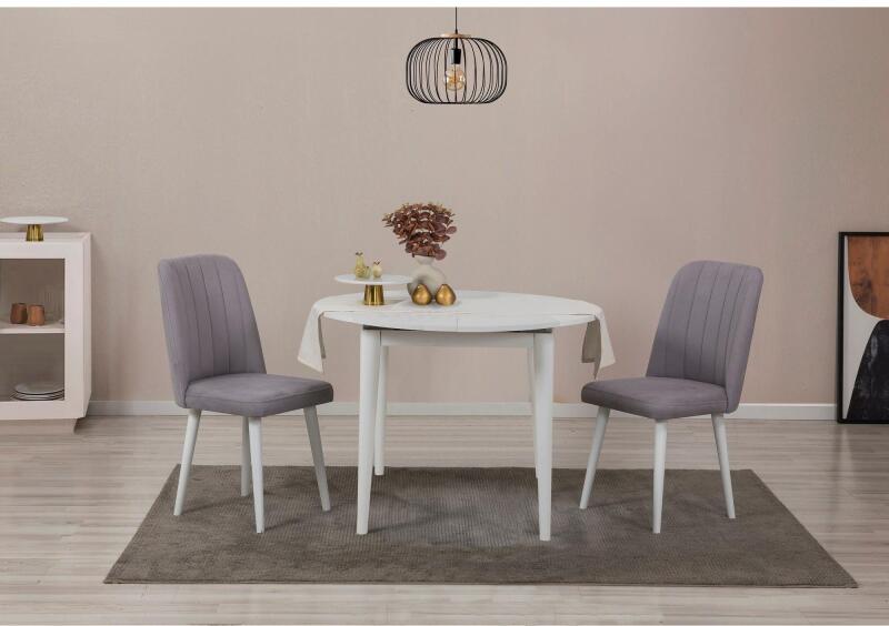 ASIR GROUP Étkezőgarnitúra Kihúzható Asztal, Szék 3 db Vina 0701 - Fehér, Szürke
