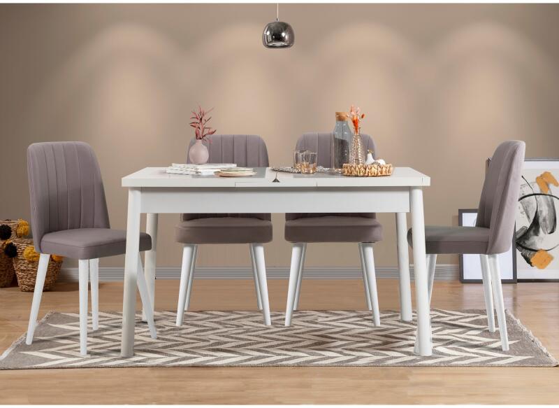 ASIR GROUP Étkezőgarnitúra Kihúzható Asztal, Szék 5 db Santiago Fehér Szürke