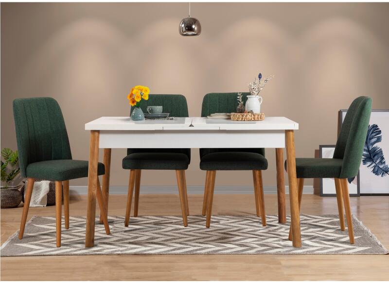 ASIR GROUP Étkezőgarnitúra Kihúzható Asztal, Szék 5 db Santiago Fehér Zöld
