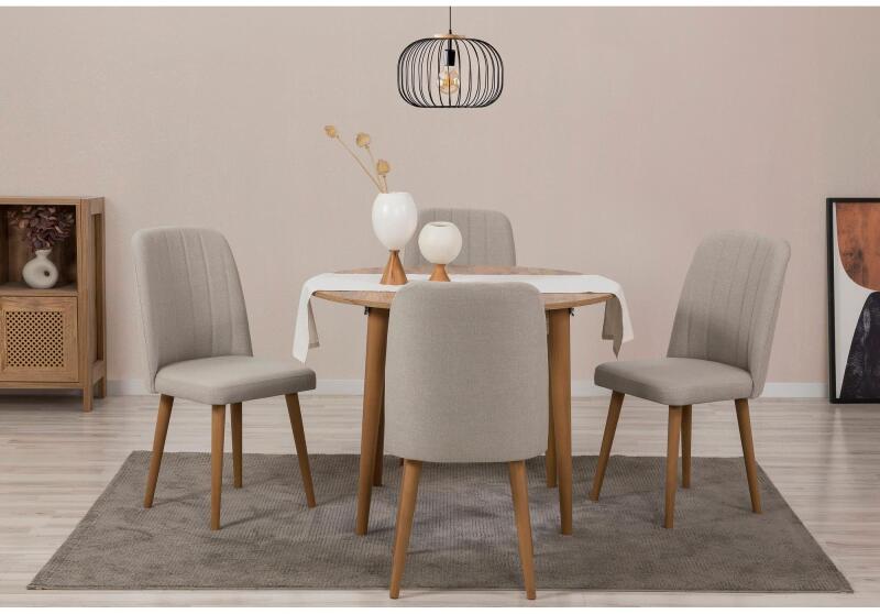 ASIR GROUP Étkezőgarnitúra Kihúzható Asztal, Szék 5 db Vina 1005 - Atlanti Fenyő, Krém