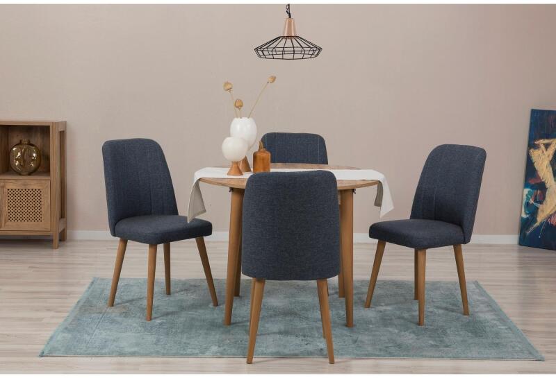 ASIR GROUP Étkezőgarnitúra Kihúzható Asztal, Szék 5 db Vina 1048 - Atlanti Fenyő, Sötétkék