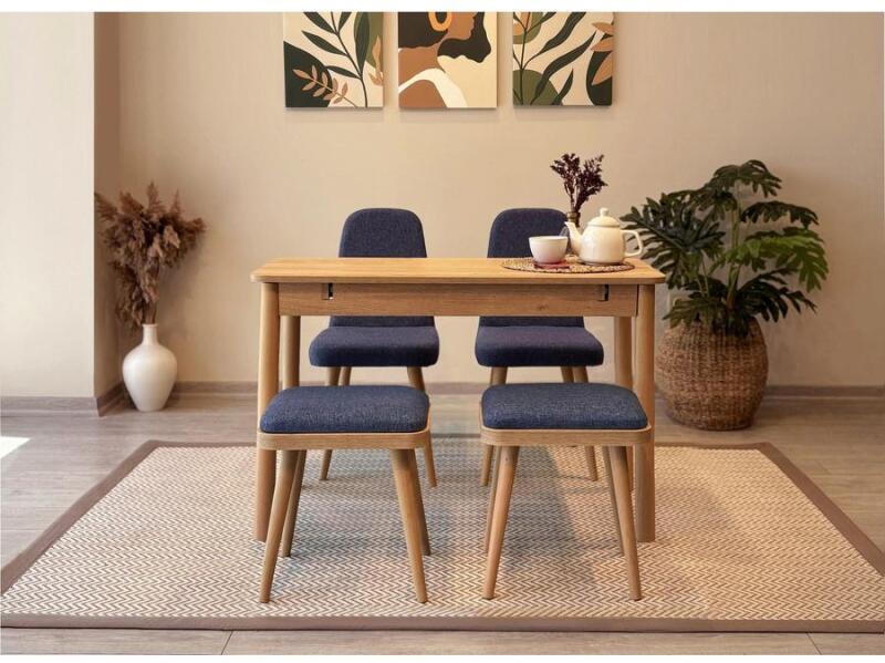 ASIR GROUP Étkezőgarnitúra(Kihúzható asztal, szék) (5 db) Vina Mini 02 1048 - Tölgy, Sötétkék (869VEL8813)