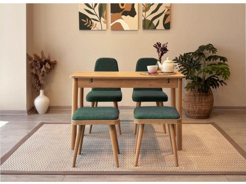 ASIR GROUP Étkezőgarnitúra(Kihúzható asztal, szék) (5 db) Vina Mini 02 1070 - Tölgy, Zöld (869VEL8816)