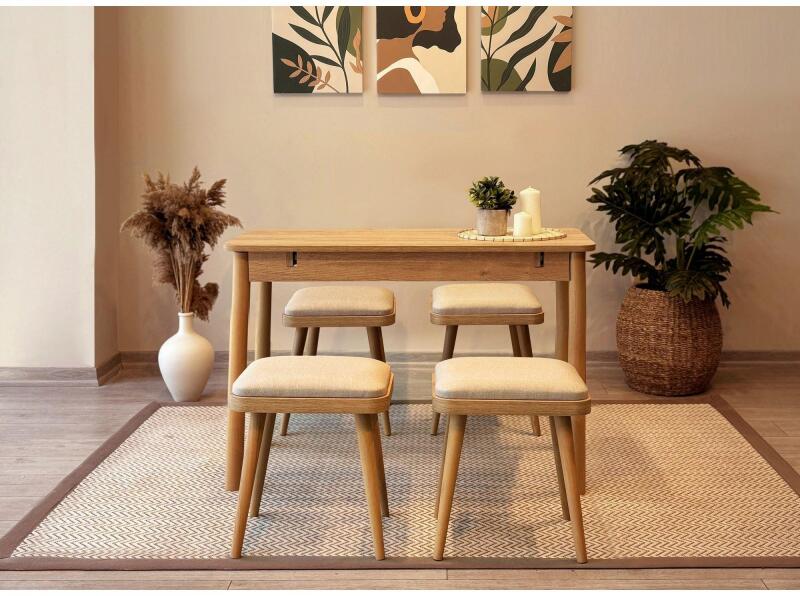ASIR GROUP Étkezőgarnitúra Kihúzható Asztal, Szék 5 db Vina Mini 05 1005 - Tölgy, Krém