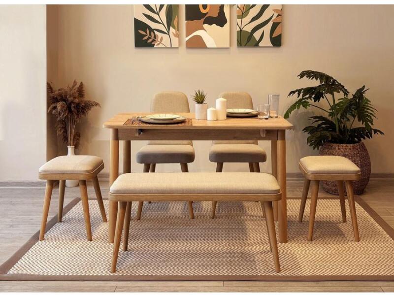 ASIR GROUP Étkezőgarnitúra(Kihúzható asztal, szék) (6 db) Vina Mini 03 1005 - Tölgy, Krém (869VEL8802)