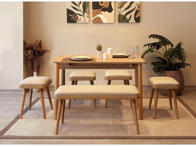 ASIR GROUP Étkezőgarnitúra Kihúzható Asztal, Szék 6 db Vina Mini 06 1005 - Tölgy, Krém