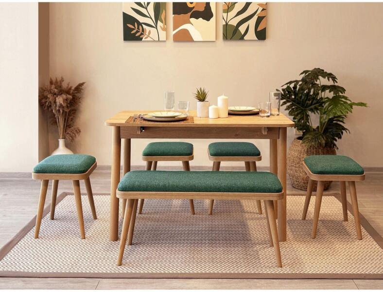ASIR GROUP Étkezőgarnitúra Kihúzható Asztal, Szék 6 db Vina Mini 06 1070 - Tölgy, Zöld