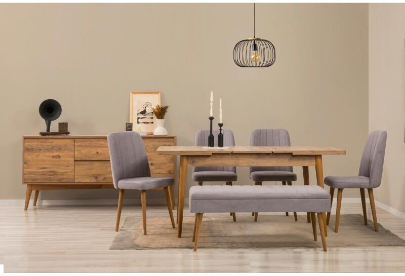 ASIR GROUP Étkezőgarnitúra Kihúzható Asztal, Szék, Konzol Asztal 7 db Vina 03 0701 - Atlanti Fenyő, Szürke