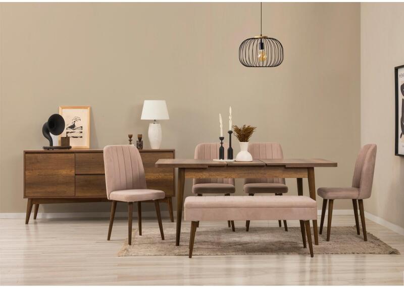 ASIR GROUP Étkezőgarnitúra Kihúzható Asztal, Szék, Konzol Asztal 7 db Vina 03 0900 - Dió, Stone