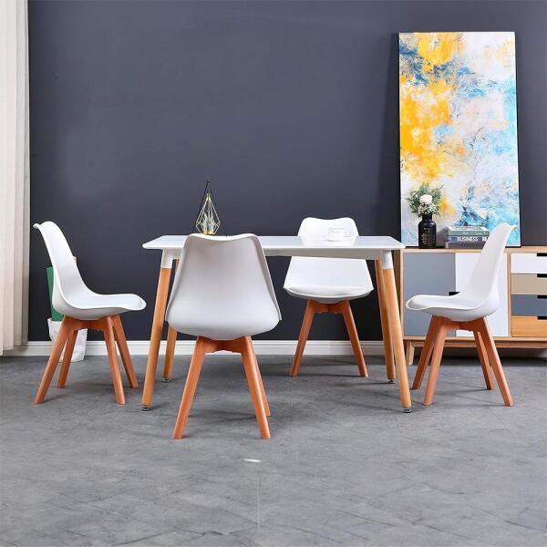 Étkezőgarnitúra, mely 4 székből és asztalból áll, modern skandináv stílusban, ez az egyszerű és időtlen megjelenés remekül kiegészíti a különböző beltéri stílusokat.