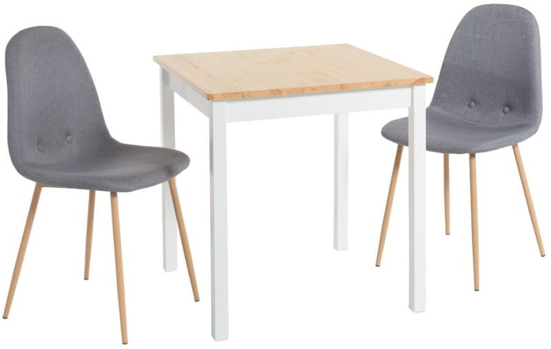 Fedezd fel kedvenc asztalod és székeid tökéletes kombinációját egy garnitúrában, ráadásul kedvező áron! A termékleírásokért kérjük, tekintsd meg az alábbi linkeket. A készlet a következő termékeket tartalmazza: 2 db-os világosszürke Bonami Essentials Lissy étkezőszék készlet és fehér, Bonami Essentials Sydney fenyőfa étkezőasztal, 70 x 70 cm-es méretben .