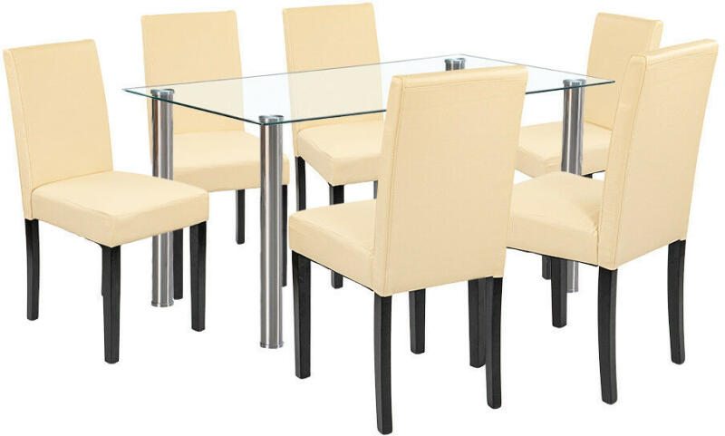Leziter Cadiz 6+1 Étkezőgarnitúra - Elegáns étkezés mindennap ?️ A Leziter Cadiz 6+1 étkezőgarnitúra tökéletes választás, ha modern stílust, kényelmet és tartósságot keresel. Ez a szett nem csak gyönyörű, de praktikus is, így ideális családi vacsorákhoz, baráti összejövetelekhez vagy akár irodai étkezésekhez is. A garnitúra tartalma: 6 db Leziter Kelly szék 1 db Leziter Berna 140 cm-es üveg étkezőasztal A Leziter Berna étkezőasztal előnyei: ✨ Elegáns design: Letisztult, minimalista megjelenés, amely bármilyen környezetbe illik. ? Strapabíró: 8 mm vastag, hőkezelt edzett üveglap és rozsdamentes acél lábak a hosszú élettartamért. ?️ Karc- és ütésálló: Az asztallap ellenáll a mindennapi használatból eredő sérüléseknek. ? Ideális méret: 140x80x75 cm-es méret 4-6 fő számára. ? Padlóvédelem: A lábak alján található műanyag gyűrűk védik a padlót a karcolásoktól. ? Könnyen tisztítható: A sima felület egyszerűen tisztán tartható. A Leziter Kelly székek előnyei: ? Kényelmes: 4 cm vastag habszivacs ülőfelület a hosszabb étkezésekhez. ? Könnyen tisztítható: Bézs ECO bőr kárpitozás, amely egyszerűen tisztán tartható. ? Stabil: Masszív fenyőfa lábak a biztonságos használatért (120 kg teherbírás). ♻️ Környezetbarát: Újrahasznosított habszivacs ülőfelület. ? Elegáns megjelenés: A bézs színű ECO bőr borítás stílusos megjelenést kölcsönöz. A Kelly szék jellemzői táblázatban:Jellemző ÉrtékSzín BézsAnyag ECO bőr (textilbőr)Ülőfelület 4 cm habszivacsLábak FenyőfaTeljes magasság 90 cmÜlésmagasság 48 cmÜlésszélesség 40 cmÜlésmélység 48 cmHáttámla szélessége 37 cmTeherbírás 120 kgKinek ajánljuk? Akik egy modern és elegáns étkezőgarnitúrát keresnek. Akik számára fontos a kényelem és a tartósság. Családoknak, irodákba vagy vendéglátóhelyekre. Teremtsd meg az otthonodban a tökéletes étkezőhelyet a Leziter Cadiz 6+1 étkezőgarnitúrával! ✨