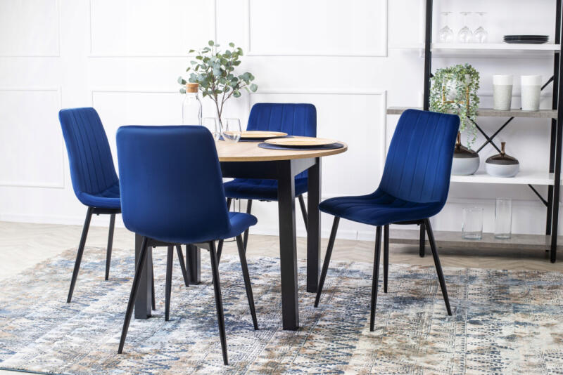 Étkezőgarnitúra 4 db. Sötétkék Bársony Ibis székkel. Bővíthető asztal HARRY 102-142 cm (ME-HARRY-DR-CZ-S-IBIS-GR-V-Z4-K)