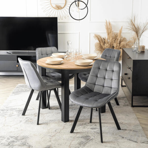 Étkezőgarnitúra 4 db. Szürke Rick székkel. Bővíthető asztal HARRY 102-142 cm (ME-W-HARRY-DC-CZ-S-RICK-P-V-Z4-K)