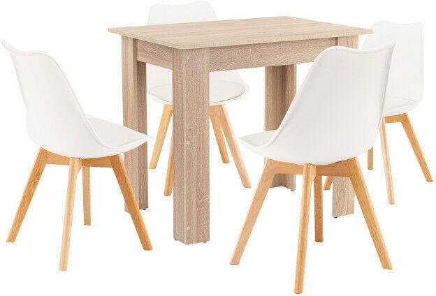 Leziter Amina Étkezőgarnitúra (4 szék + 1 asztal) - Stílus és Kényelem Egyben! ?️ Az Amina 4+1 étkezőgarnitúra a Lezitertől tökéletes választás modern otthonokba, éttermekbe és irodai konyhákba. Ez a szett ötvözi a Silla étkezőszékek és a Yorki étkezőasztal eleganciáját és funkcionalitását, ideális helyet biztosítva 4 fő számára. A szett tartalma: 4 db Silla étkezőszék 1 db Yorki étkezőasztal Silla Étkezőszék - Modern Kényelem:Ülőfelület: Prémium polipropilén, könnyen tisztítható Lábak: Bükkfa színű, tartós faanyag Párnázat: Szintetikus textil (PVC) a kényelmes ülésért Teherbírás: 120 kg Méretek: Magasság: 81 cm Szélesség: 49 cm Ülésmélység: 43 cm Ülőmagasság: 45 cmYorki Étkezőasztal - Funkcionalitás és Stílus:Asztallap: Magas minőségű, kopásálló bútorlap Felület: Elegáns sonoma tölgy mintázat Kivitelezés: Precíz élzárás, strapabíró szerkezet Méretek: Hosszúság: 86 cm Szélesség: 60 cm Magasság: 76 cmMiért válaszd az Amina étkezőgarnitúrát?Időtálló dizájn: A fehér és sonoma tölgy színkombináció bármilyen stílushoz illik. Praktikus: Könnyen tisztítható és strapabíró anyagok. Optimális méret: Kisebb terekbe is ideális. Minőségi garancia: A Leziter megbízható minőséget képvisel. Teremts stílusos és harmonikus étkezőt az Amina 4+1 étkezőgarnitúrával! ✨