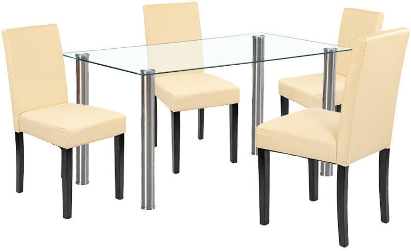 Leziter Cadiz étkezőgarnitúra: Elegáns, modern étkező 4+1 fő részére Ez a stílusos étkezőgarnitúra tökéletes választás modern otthonokba, ahol a kényelem és az elegancia kéz a kézben jár. A fehér üveg asztal és a bézs textilbőr székek kellemes, harmonikus összhangot teremtenek. Az asztal: 140x80x75 cm-es méretű, 8 mm vastag edzett üveglappal Strapabíró, rozsdamentes acél lábakkal Könnyen tisztítható felület Stabil és tartós kivitel A székek: 4 darab bézs ECO bőr kárpitozású szék Kényelmes, 4 cm vastag habszivacs ülőfelület Stabil fenyőfa lábak 120 kg-os teherbírás Könnyen tisztítható felület Előnyök:Modern és elegáns design: Tökéletesen illeszkedik a modern otthonokba. Kényelmes és tartós: A minőségi anyagoknak köszönhetően hosszú éveken át szolgál majd. Könnyen tisztítható: A felületek könnyen ápolhatók, így mindig makulátlan marad az étkező. Stabil szerkezet: Az asztal és a székek egyaránt stabilak és biztonságosak. Tökéletes méret: 4-6 fő számára is elegendő helyet biztosít. Méretek:Termék MéretAsztal 140x80x75 cmSzék 40x48x90 cmÉlvezze a családi vacsorákat vagy baráti összejöveteleket ebben a stílusos és kényelmes étkezőgarnitúrában!