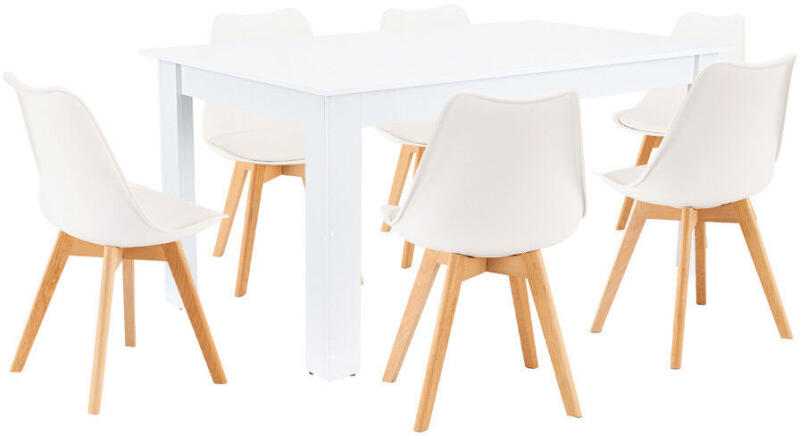 Leziter Lola étkezőgarnitúra: Stílusos és modern étkező 6+1 főre Ez a Leziter Lola étkezőgarnitúra tökéletes választás modern otthonokba, éttermekbe vagy stílusos irodai konyhákba. A garnitúra 6 db Silla étkezőszékből és 1 db Yorki étkezőasztalból áll, ötvözve a funkcionalitást a letisztult dizájnnal. Ideális 6 fő számára, mérete miatt pedig közepes méretű helyiségekbe is könnyedén elfér. Silla étkezőszék:Kényelmes: Prémium polipropilén ülőfelülettel és szintetikus textil (PVC) párnázattal a hosszan tartó komfortért. Tartós: Bükkfa színű lábakkal a stabilitásért. Könnyen tisztítható: A polipropilén felület egyszerűen tisztítható. Teherbírás: 120 kg Méretek: Magasság: 81 cm Szélesség: 49 cm Ülésmélység: 43 cm Ülőmagasság: 45 cmYorki étkezőasztal:Stílusos: Elegáns fehér asztallappal. Tartós: Magas minőségű, kopásálló bútorlapból készült. Praktikus: Precíz élzárás és strapabíró szerkezet. Méretek: Hosszúság: 160 cm Szélesség: 90 cm Magasság: 76 cmA garnitúra előnyei:Időtálló dizájn: A fehér színkombináció bármilyen lakberendezési stílushoz illik. Könnyen tisztítható: A felületek egyszerűen tisztíthatók. Optimális méret: Tökéletes 6 fős családok számára, de kisebb terekbe is megfelelő. Minőségi anyagok: A Leziter márka garantálja a tartósságot. Élvezze a stílusos és praktikus étkezőt a Leziter Lola étkezőgarnitúrával! ✨