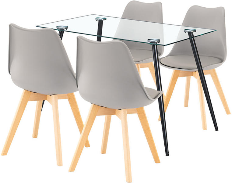 Rendeld meg most, és élvezd az üveg asztal eleganciáját és a szürke székek kényelmét minden étkezés alkalmával.