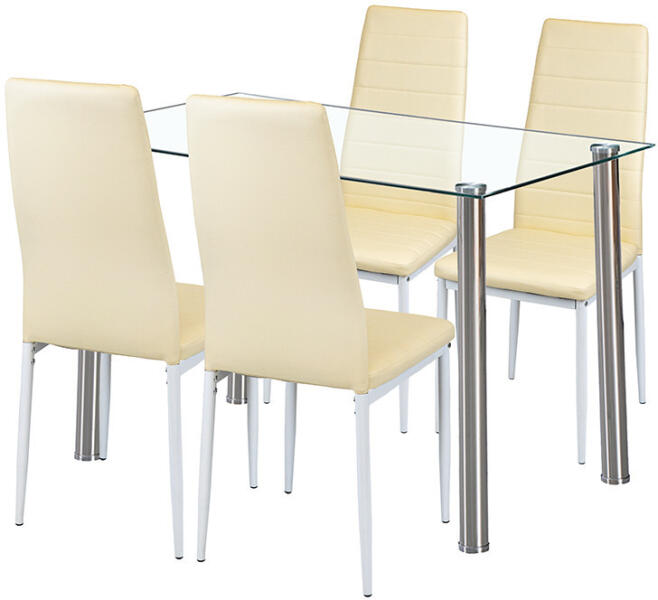 Nolen 4+1 étkezőgarnitúra – Modern elegancia bézs székekkel és edzett üvegasztallal