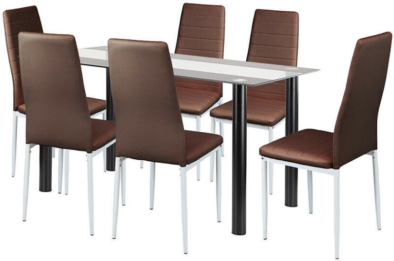 Norman Étkező Garnitúra: Modern Elegancia a Mindennapokra ?️ A Norman 6+1 étkezőgarnitúra a modern minimalizmus és a praktikus funkcionalitás tökéletes kombinációja. Ideális választás étkeződbe vagy konyhádba, ahol stílusos és időtálló enteriőrt szeretnél kialakítani. A garnitúra tartalma:1 db Leziter Riona étkezőasztal6 db Tino NOVA étkezőszékLeziter Riona Étkezőasztal Jellemzői:Méret: 140 × 80 × 75 cm - Kényelmesen elfér 4-6 személy Asztallap: 8 mm vastag edzett üveg, füstszürke - Elegáns és könnyen tisztítható Váz: Porszórt acél, fekete - Stabil és tartós Terhelhetőség: 60 kg Tino NOVA Étkezőszék Jellemzői:Méret: 50 × 41 × 96 cm (ülőmagasság: 45 cm) - Ergonomikus kialakítás a kényelmes ülésért Szín: Barna - Stílusos és könnyen kombinálható Anyag: Textilbőr ülőfelület, fém szerkezet - Könnyen tisztítható és tartós Teherbírás: max. 130 kg Miért válaszd a Norman étkezőgarnitúrát?Modern design: Letisztult vonalak és elegáns színvilág Minőségi anyagok: Tartós és könnyen kezelhető Kényelmes használat: Ergonomikus székek és praktikus asztalméret Sokoldalúság: Ideális választás családoknak, pároknak és baráti összejövetelekhez Kinek ajánljuk? Akik elegáns és letisztult étkezőgarnitúrát keresnek. Akik számára fontos a könnyű tisztíthatóság és a minőségi anyaghasználat. Családoknak, pároknak, akik kényelmes és stabil bútordarabokra vágynak. Modern, minimalista vagy ipari stílusú otthonokba. Alakítsd ki a tökéletes étkezőt otthonodban a Norman 6+1 étkezőgarnitúrával! ✨