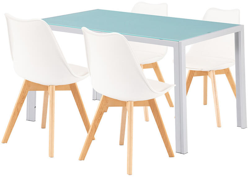 Nuvia 4+1 étkezőgarnitúra fehér-fehér – elegáns és modern étkezőszett 4 székkel és üveg asztallal Főbb jellemzők – Silla étkezőszék (4 db):
