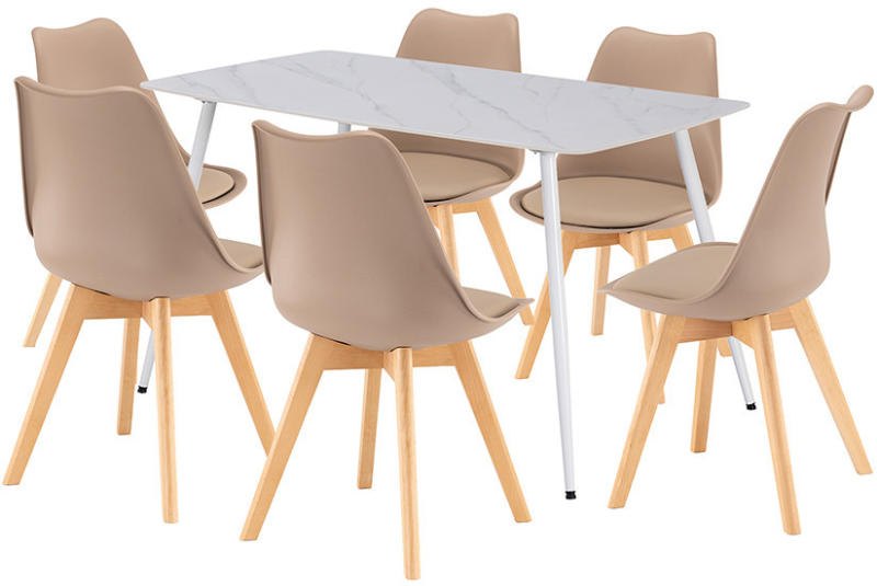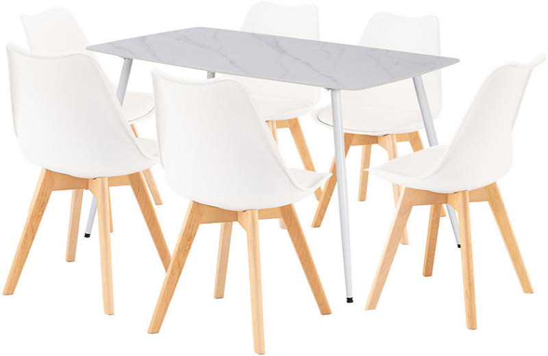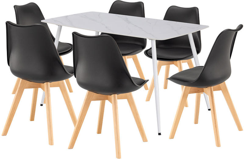 Ravena 6+1 étkezőgarnitúra fehér-fekete – minőségi étkezőszett tartós asztallal és kényelmes székekkel Főbb jellemzők – Silla étkezőszék (6 db):