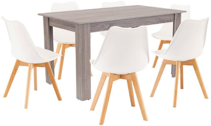 Leziter Zara 6+1 Étkezőgarnitúra - Stílus és Kényelem Egyben ?️ A Leziter Zara 6+1 étkezőgarnitúrája tökéletes választás modern otthonokba, éttermekbe és irodai konyhákba. Ez a garnitúra a népszerű Silla étkezőszékek és a Yorki standard étkezőasztal harmonikus kombinációja, amely funkcionalitást és időtálló dizájnt kínál. A szett tartalma: 6 db Silla étkezőszék 1 db Yorki standard étkezőasztal Ideális 6 fő számára, és méretének köszönhetően kis és közepes méretű helyiségekbe is jól illeszkedik. Silla Étkezőszék - Modern KényelemÜlőfelület: Prémium polipropilén, könnyen tisztítható felülettel Lábak: Bükkfa színű, tartós faanyag Kényelem: Szintetikus textil (PVC) párnázat a hosszan tartó komfortért Teherbírás: 120 kg Méretek: Magasság: 81 cm Szélesség: 49 cm Ülésmélység: 43 cm Ülőmagasság: 45 cm Yorki Étkezőasztal - Funkcionalitás és StílusAsztallap: Magas minőségű, kopásálló bútorlap Felület: Elegáns yorki tölgy mintázat Kivitelezés: Precíz élzárás, strapabíró szerkezet Méretek: Hosszúság: 140 cm Szélesség: 80 cm Magasság: 76 cm Miért válaszd a Leziter Zara étkezőgarnitúrát?Időtálló dizájn: A fehér és yorki tölgy színkombináció bármilyen lakberendezési stílushoz illeszkedik. ? Praktikus: Könnyen tisztítható felületek és strapabíró anyagok. ✨ Optimális méret: Tökéletes 6 fős családoknak, de kisebb terekbe is ideális. ?‍?‍?‍? Minőségi garancia: A Leziter márka megbízható minőséget képvisel. ✅ A Leziter Zara 6+1 étkezőgarnitúrával stílusos, időtálló és praktikus étkezőt alakíthatsz ki. A Leziter Silla étkezőszékek és a Leziter Yorki standard étkezőasztalok többféle színben és méretben is elérhetőek!