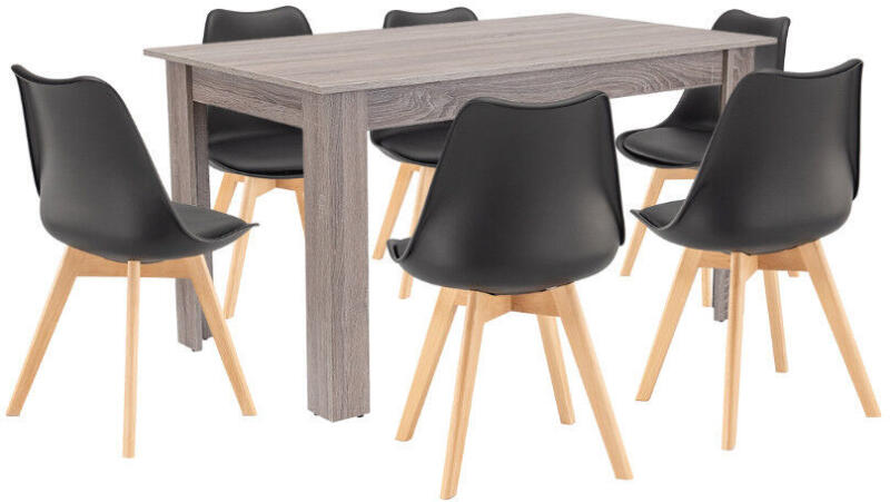 Leziter Zara 6+1 Étkezőgarnitúra: Stílus és Kényelem Egyben ?️ A Leziter Zara 6+1 étkezőgarnitúra tökéletes választás modern otthonokba, éttermekbe és irodai konyhákba. Ez a stílusos szett 6 darab Silla étkezőszéket és egy Yorki étkezőasztalt tartalmaz, ötvözve a funkcionalitást és az időtálló dizájnt. A szett tartalma: 6 db Silla étkezőszék 1 db Yorki étkezőasztal Silla Étkezőszék - Modern KényelemÜlőfelület: Prémium polipropilén, könnyen tisztítható Lábak: Bükkfa színű, tartós faanyag Párnázat: Szintetikus textil (PVC) a kényelemért Teherbírás: 120 kg Méretek: Magasság: 81 cm Szélesség: 49 cm Ülésmélység: 43 cm Ülőmagasság: 45 cmYorki Étkezőasztal - Funkcionalitás és StílusAsztallap: Magas minőségű, kopásálló bútorlap Felület: Elegáns yorki tölgy mintázat Kivitelezés: Precíz élzárás, strapabíró szerkezet Méretek: Hosszúság: 140 cm Szélesség: 80 cm Magasság: 76 cmMiért válaszd a Leziter Zara étkezőgarnitúrát?Időtálló dizájn: A fekete és yorki tölgy színkombináció elegáns és sokoldalú. Praktikus: Könnyen tisztítható felületek a mindennapi használatra. Optimális méret: Ideális 6 fős családoknak, kis és közepes méretű terekbe is. Minőségi garancia: A Leziter márka megbízható minőséget képvisel. Teremts stílusos és praktikus étkezőt a Leziter Zara 6+1 étkezőgarnitúrával! ✨