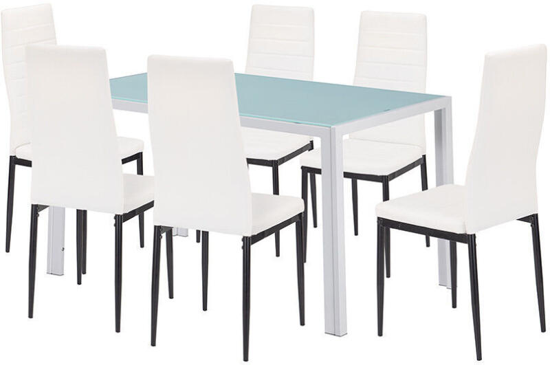 Mabel 6+1 Étkezőgarnitúra: Modern elegancia a mindennapokban ?️ A Mabel 6+1 étkezőgarnitúra tökéletes választás, ha stílusos és praktikus megoldást keresel étkeződbe. A modern design és a letisztult vonalak minden étkezést különlegessé tesznek. Főbb jellemzők:Asztal mérete: 140 × 80 × 74 cm Asztallap: 8 mm vastag, edzett üveg a biztonságért és tartósságért ? Asztal lábai: Strapabíró, fehér porfestett fém a stabilitásért Szék mérete: 50 × 41 × 96 cm (ülőmagasság: 45 cm) Szék anyaga: Fehér textilbőr ülőfelület a kényelemért és könnyű tisztíthatóságért ?, fekete vasláb a modern megjelenésért Szék színe: Fehér-fekete a stílusos kontrasztért Terhelhetőség (szék): max. 130 kg Férőhely: 6 fő Miért válaszd a Mabel étkezőgarnitúrát?Modern design: A fehér és fekete színkombináció elegáns és időtálló. Helytakarékos: Ideális kisebb étkezőkbe is. Kényelmes: A textilbőr székek hosszú távon is komfortosak. Tartós: Az edzett üveg asztallap és a fém lábak hosszú élettartamot biztosítanak. Könnyen tisztítható: A felületek egyszerűen letörölhetők, így a mindennapi használat során is praktikus. ✨ Kinek ajánljuk? A Mabel 6+1 étkezőgarnitúra tökéletes választás: Azoknak, akik modern és világos étkezőt szeretnének. Kisebb lakásokba, ahol fontos a helykihasználás. Azoknak, akik tartós és stílusos bútort keresnek. Akik szeretik a praktikus, mégis elegáns megoldásokat. Tedd a kosárba most, és élvezd a stílusos étkezéseket a Mabel 6+1 étkezőgarnitúrával! ?