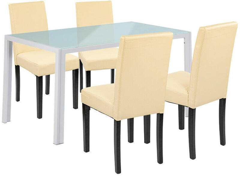 Leziter Mira 4+1 Étkezőgarnitúra - Elegáns étkezések stílusosan ?️ A Leziter Mira 4+1 étkezőgarnitúra tökéletes választás, ha modern és kényelmes étkezőt szeretnél. A szett tartalmaz egy üveg étkezőasztalt és négy kényelmes széket, így ideális családi vacsorákhoz, baráti összejövetelekhez vagy akár irodai használatra is. Főbb jellemzők: ✅ Modern design: A fehér és bézs színkombináció elegáns megjelenést kölcsönöz. ?‍?‍?‍? Ideális 4 személyre: Tökéletes kisebb és közepes méretű étkezőkbe. ? Strapabíró anyagok: Hosszú élettartamra tervezve. ? Könnyen tisztítható: Az ECO bőr székek és az üveg asztallap egyszerűen karbantarthatók. Az asztal - Leziter Ezra üveg étkezőasztal:Méret: 140 cm hosszú, 80 cm széles és 74 cm magas. Anyag: Hőkezelt, 8 mm vastag edzett üveg. Szín: Fehér festett üveglap. Lábak: 20x40 mm-es fém lábak korrózióálló bevonattal. Előnyök: ✨ Világosabbá és tágasabbá teszi a teret. ?️ Ellenáll a karcolásoknak, hőhatásoknak és mechanikai sérüléseknek. ?️ Könnyű és gyors összeszerelés. A székek - Leziter Kelly székek:Szín: Bézs. Anyag: Könnyen tisztítható ECO bőr (textilbőr). Ülőfelület: 4 cm vastag habszivacs párna. Lábak: Stabil, masszív fenyőfa. Méretek: Teljes magasság: 90 cm Ülésmagasság: 48 cm Ülésszélesség: 40 cm Ülésmélység: 48 cm Háttámla szélessége: 37 cmTeherbírás: 120 kg. Előnyök: ?️ Ergonomikus kialakítás a kényelmes üléspozícióért. ? Környezetbarát habszivacs töltet. Kinek ajánljuk? Akik kis vagy közepes méretű étkezőt szeretnének berendezni. Akik kényelmes, tartós és modern étkezőszéket keresnek. Akik könnyen tisztítható megoldást szeretnének. Kávézók, éttermek és rendezvényhelyszínek tulajdonosai. Irodai étkezők berendezéséhez. Teremtsd meg otthonod stílusos központját a Leziter Mira 4+1 étkezőgarnitúrával! ✨