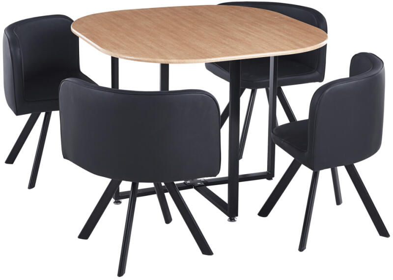 TEMPO KONDELA Étkező Szett 1+4, Tölgy/Fekete, Bevis New - fizz