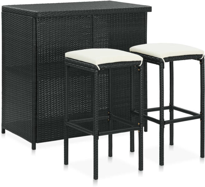 vidaXL 3 részes fekete polyrattan bárszett (313471)