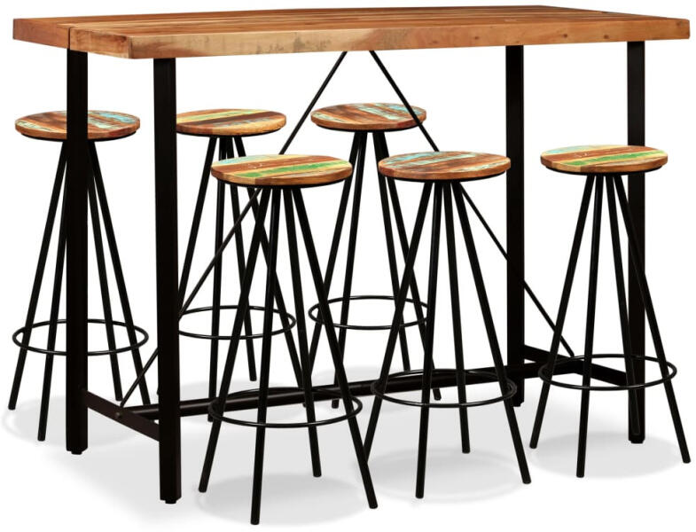 vidaXL 7-részes tömör akácfa és újrahasznosított fa bárszett (275134)