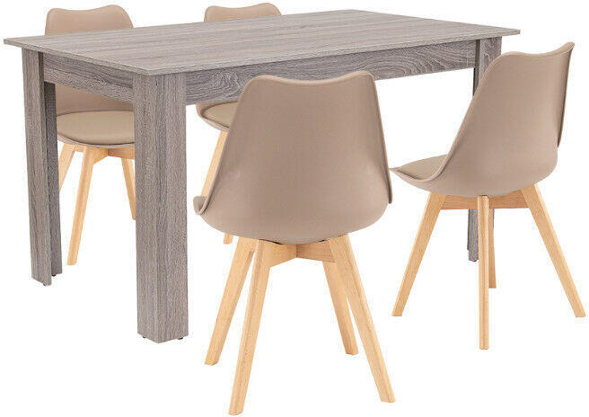 Leziter Zara 4+1 Étkezőgarnitúra - Bézs és Yorki Tölgy kombinációja az elegáns étkezésekhez ?️ A Leziter Zara 4+1 étkezőgarnitúrája tökéletes választás, ha modern és stílusos étkezőt szeretnél kialakítani. Ez a garnitúra egyesíti a funkcionalitást az időtálló dizájnnal, így ideális választás otthonokba, éttermekbe és irodai konyhákba egyaránt. A garnitúra tartalma:4 db Silla étkezőszék: Kényelmes és modern kialakítású székek. 1 db Yorki standard étkezőasztal: Strapabíró és elegáns asztal. Silla Étkezőszék - A kényelem és a stílus találkozása:Ülőfelület: Prémium minőségű polipropilénből készült, amely könnyen tisztítható. ? Lábak: Bükkfa színű, tartós faanyagból a stabilitásért. ? Párnázat: Szintetikus textil (PVC) anyagú párnázat a hosszan tartó kényelemért. ? Teherbírás: Akár 120 kg-ig terhelhető. ? Méretek:Méret ÉrtékMagasság 81 cmSzélesség 49 cmÜlésmélység 43 cmÜlőmagasság 45 cmYorki Étkezőasztal - Funkcionalitás és elegancia:Asztallap: Magas minőségű, kopásálló bútorlapból készült a hosszú élettartamért. ?️ Felület: Elegáns yorki tölgy mintázat, amely bármely enteriőrbe illeszkedik. ? Kivitelezés: Precíz élzárás és strapabíró szerkezet a stabilitásért. ? Méretek:Méret ÉrtékHosszúság 140 cmSzélesség 80 cmMagasság 76 cmMiért válaszd a Zara 4+1 étkezőgarnitúrát?Időtálló dizájn: A bézs-yorki tölgy színkombináció elegáns és modern megjelenést biztosít. ✨ Praktikus használat: Könnyen tisztítható felületek és strapabíró anyagok a mindennapi használatra. ? Optimális méret: Tökéletes 4 fős családok számára, és kisebb terekbe is ideális. ?‍?‍?‍? Minőségi garancia: A Leziter márka garantálja a tartósságot és a minőséget. ?
